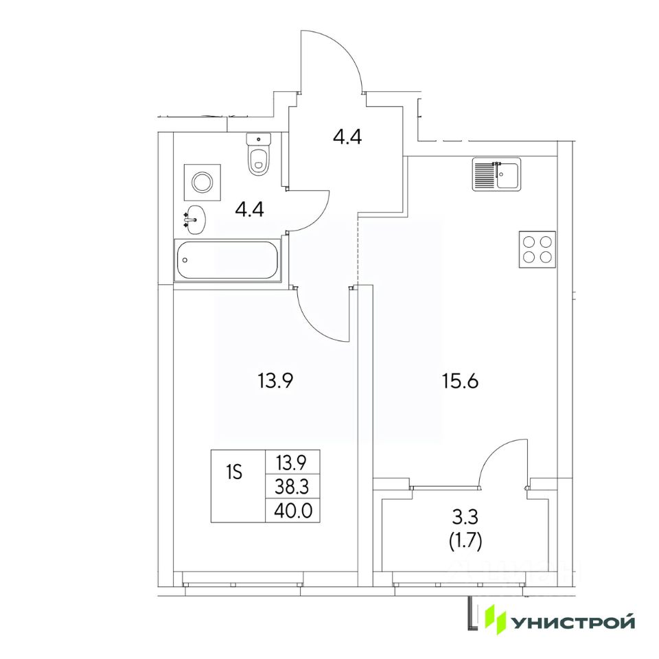 Жилая площадь13,9 м2