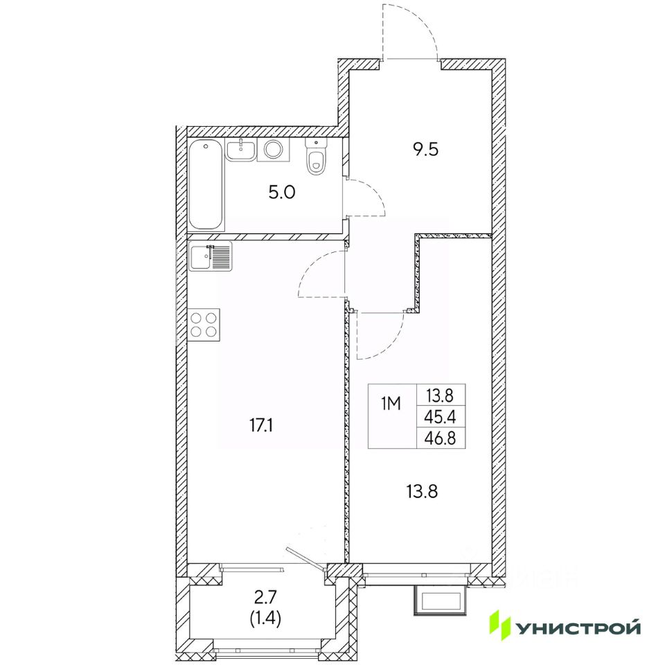 Жилая площадь13,8 м2