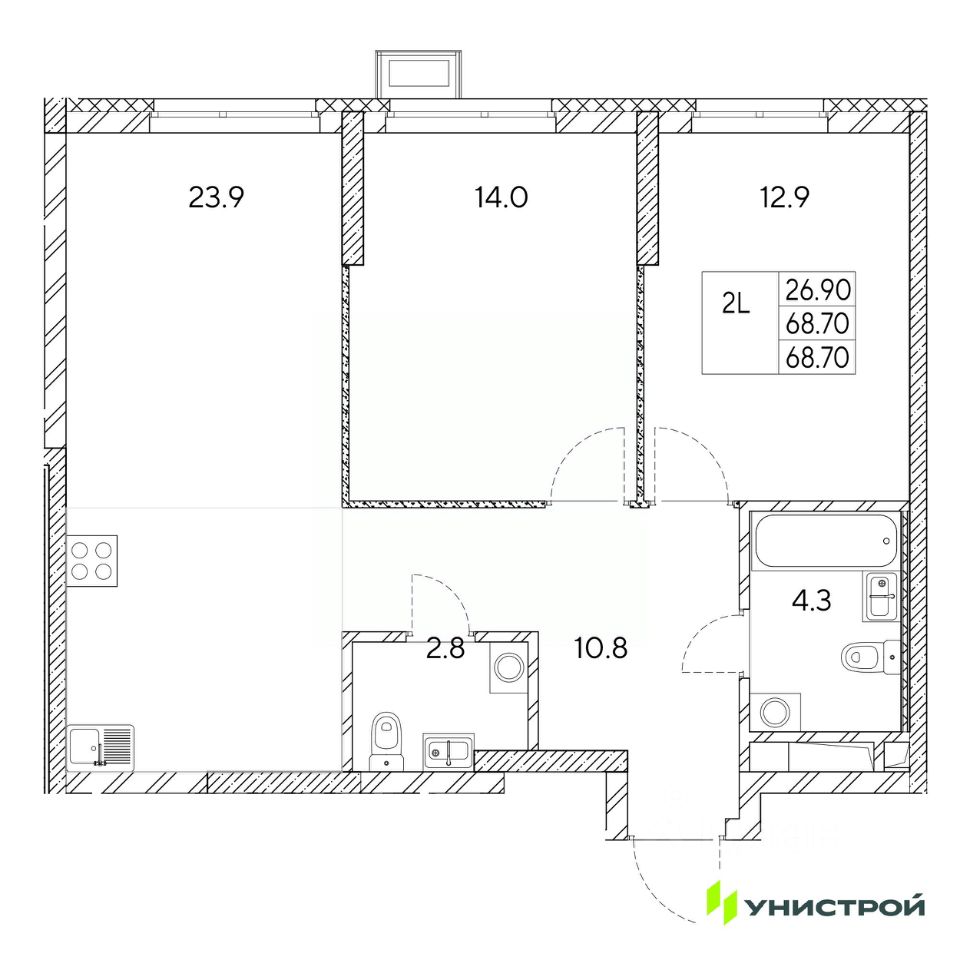 Общая площадь68,7 м2