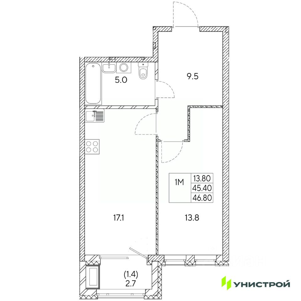 Общая площадь46,8 м2