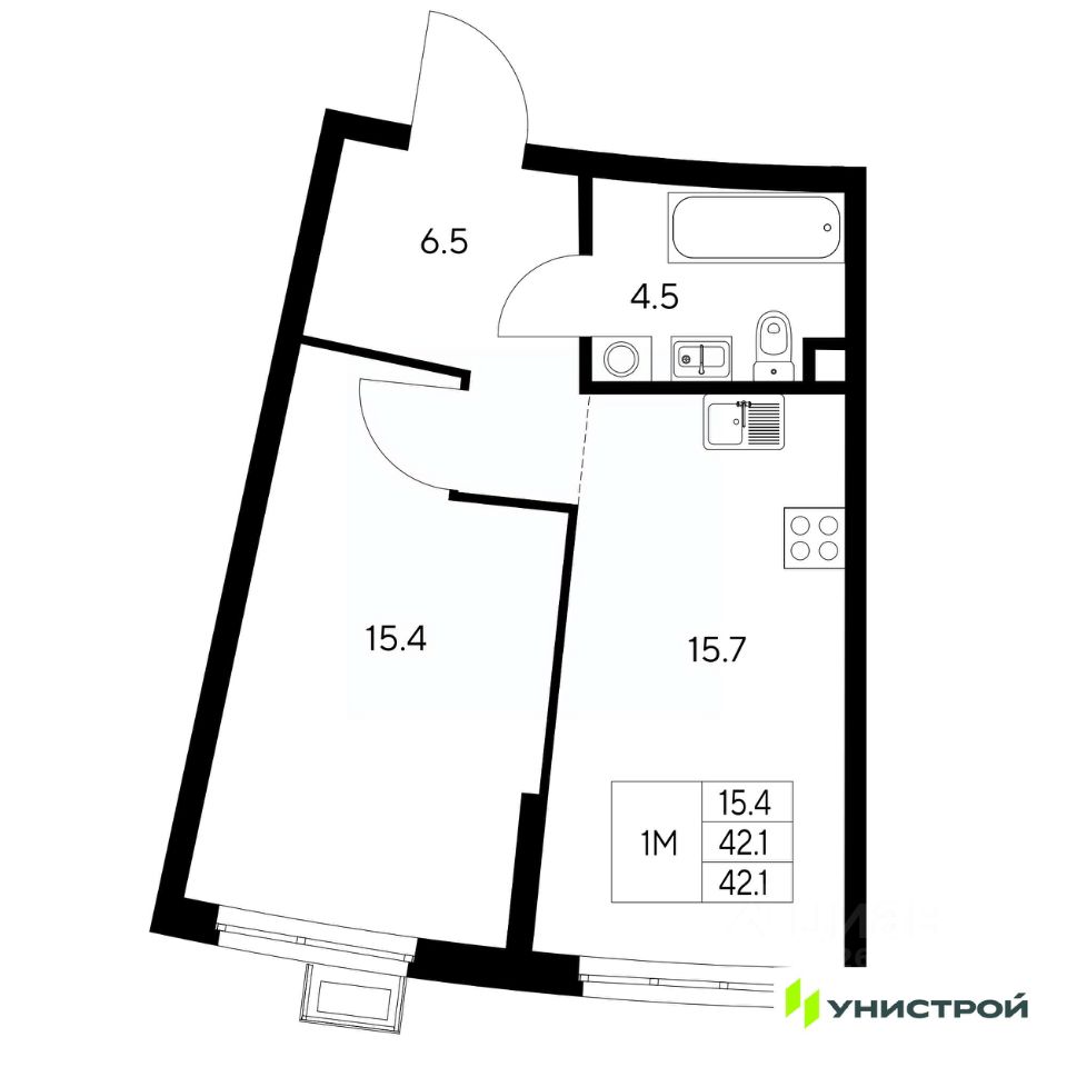 Общая площадь42,1 м2