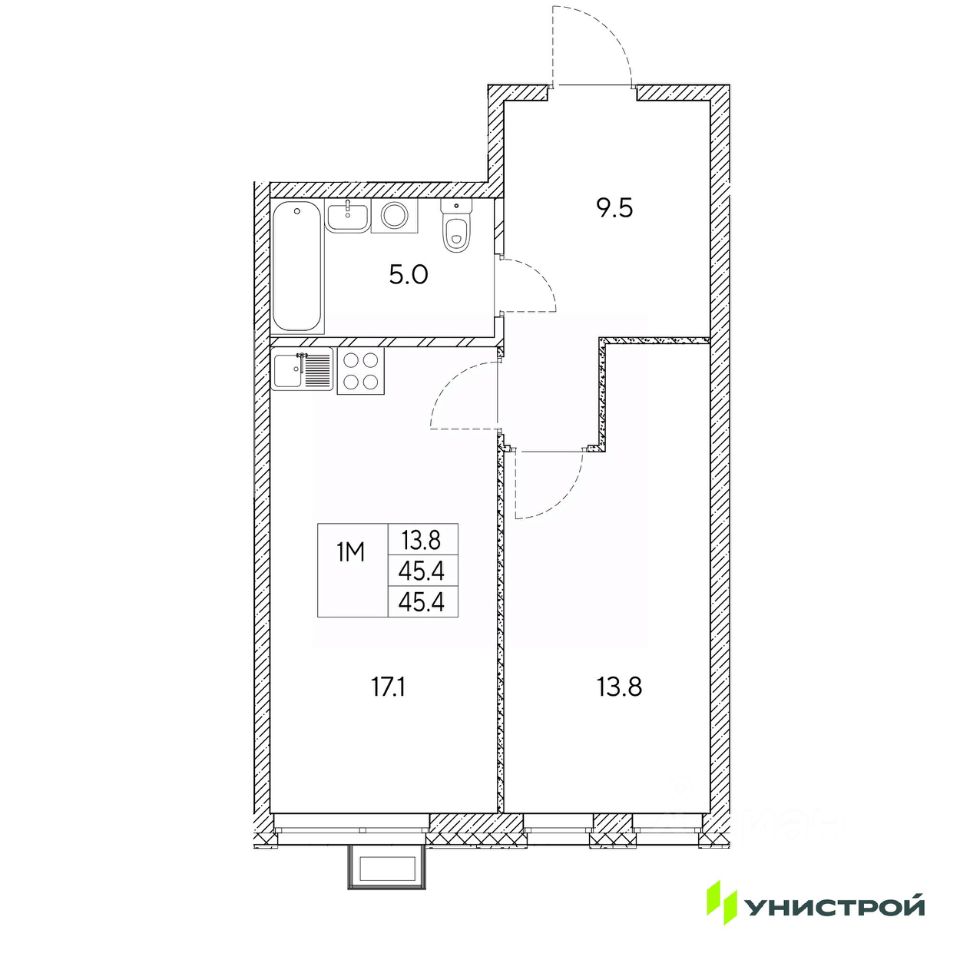 Общая площадь45,4 м2