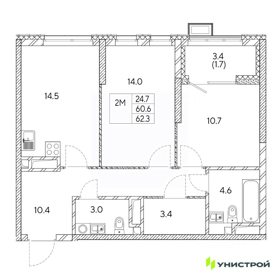 Общая площадь62,3 м2