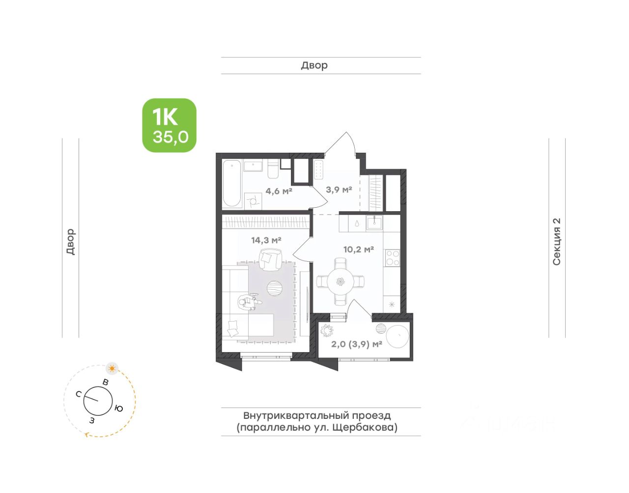 Жилая комната легко адаптируется под ваш стиль жизни. Здесь предусмотрено место для удобной системы хранения, а правильные пропорции комнаты позволяют создать комфортную атмосферу для отдыха и работы