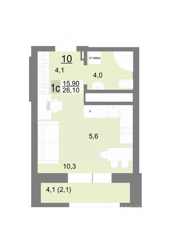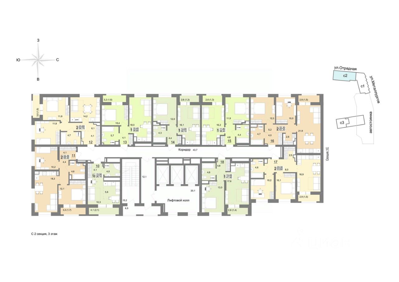 Продаётся студия в строящемся доме (Секция С1), срок сдачи: III-кв. 2026, общей площадью 26.1 кв.м., на 3 этаже. Многоэтажные жилые дома по ул. Металлургов от ГК ''Астра''. 1 очередь строительства