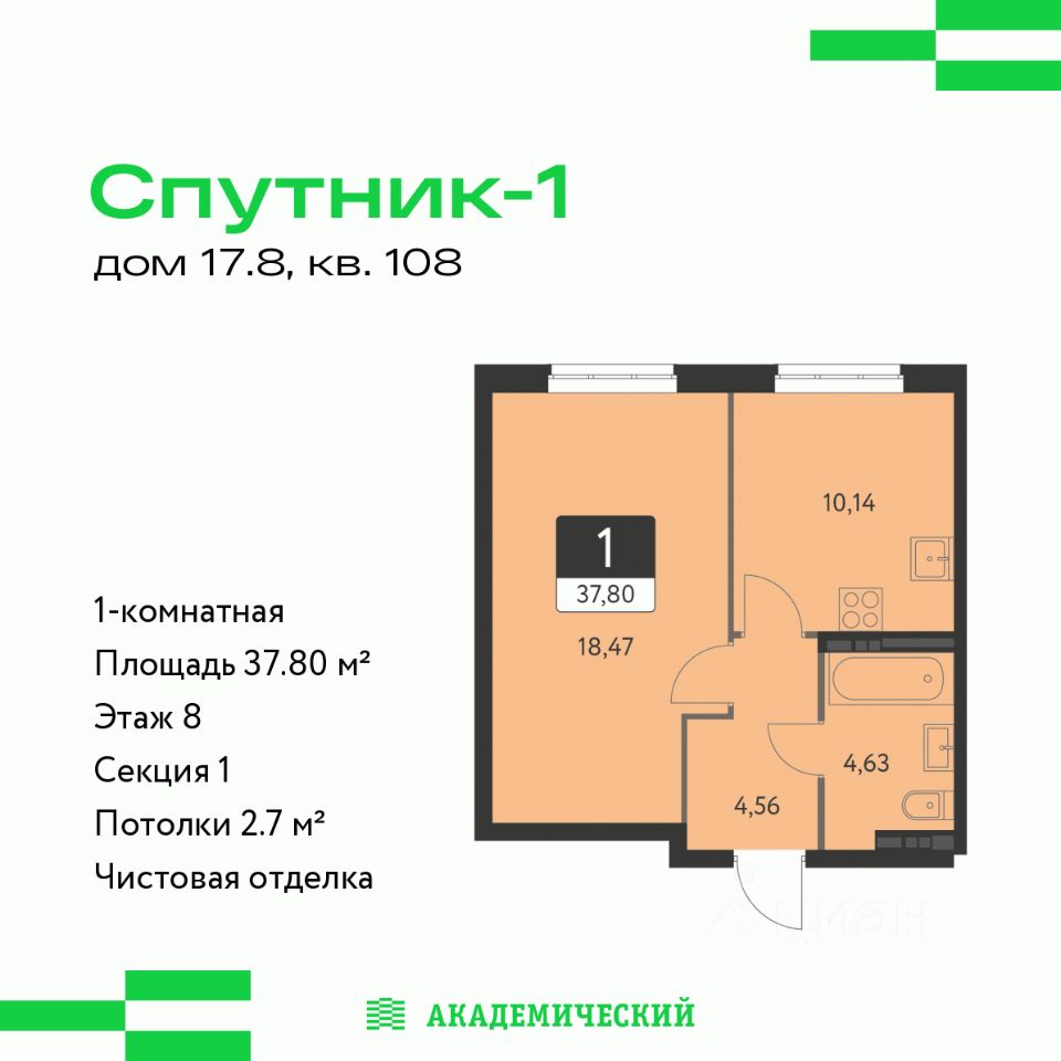 продам 1-к, Академика Ландау, 17/85 968 850 ₽