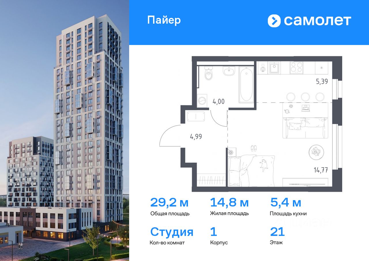 Строим кварталы для жизни с заботой о будущем. Предлагается квартира студия комфорт-класса 29,15 кв.м в корпусе 1 на 21 этаже, в ЖК ''Пайер'' Квартира с предчистовой отделкой. Доступность дополнительных опций уточняйте у застройщика.