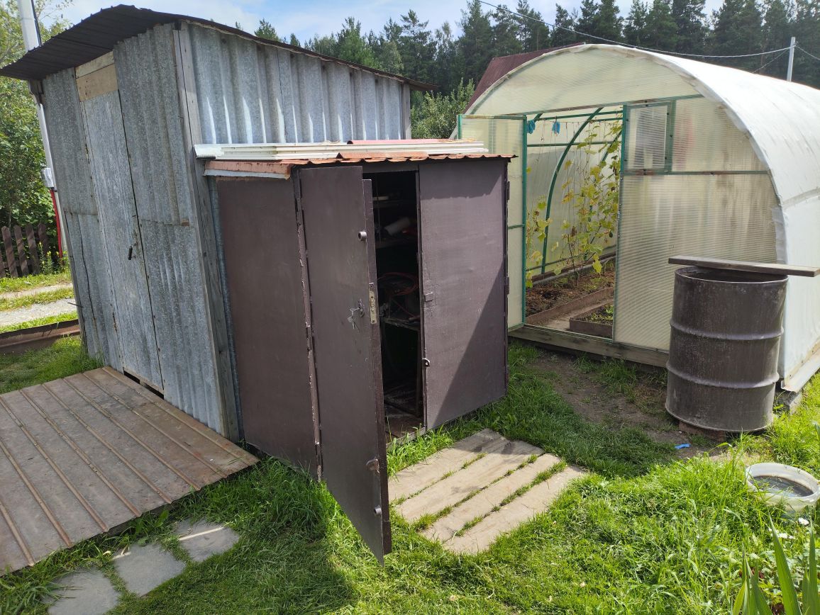 СНТ Вершина-2 (сады 88) находится в особо охраняемой зоне (заповедник) - чистейший пьянящий воздух, за забором грибы-ягоды. Тупиковое расположение, дальше дороги нет (из всех рядом расположенных СНТ это самое удачное и лучшее место, наиболее удаленное от города, дорог и прочих ''прелестей'' цивилизации), 8 км от Первоуральска в сторону Екатеринбурга. Электричество есть, газ для плиты - в баллонах, сотовая связь Мотив (вышка на въезде в СНТ). Дом из бетонных блоков, 2 этажа. Первый этаж обустроен (комната 22м2), второй - нет. Все окна на первом этаже пластиковые. Рядом с домом есть второе отдельно стоящее помещение на одно спальное место, примерно 3,5м3. и большой металлический двухдверный шкаф/сейф для хранения ценных вещей/инвентаря (хранили там деревообрабатывающий станок и бензогенератор). У дома есть обустроенное парковочное место для авто (на бетонном основании). Отдам в дар автомойку (подключается к баку, напора достаточно). Земельный участок общей площадью 6 соток. Два теплицы (поликарбонат), 6м и 4м. Насаждения - яблоня, облепиха, вишня, черная и красная смородина, крыжовник, жимолость (3 куста), малина, клубника (5 грядок) и др. Три года назад завозился чернозем 5м3. Участок светлый, комаров по минимуму, т.к. участок не на границе с лесом (!), соседи - душевные отзывчивые люди. Вода из скважины питьевая, подземный водопровод в накопительный бак 2,5м3. Весь садовый инвентарь остается в дар новому хозяину. Туалет отдельный во дворе.
