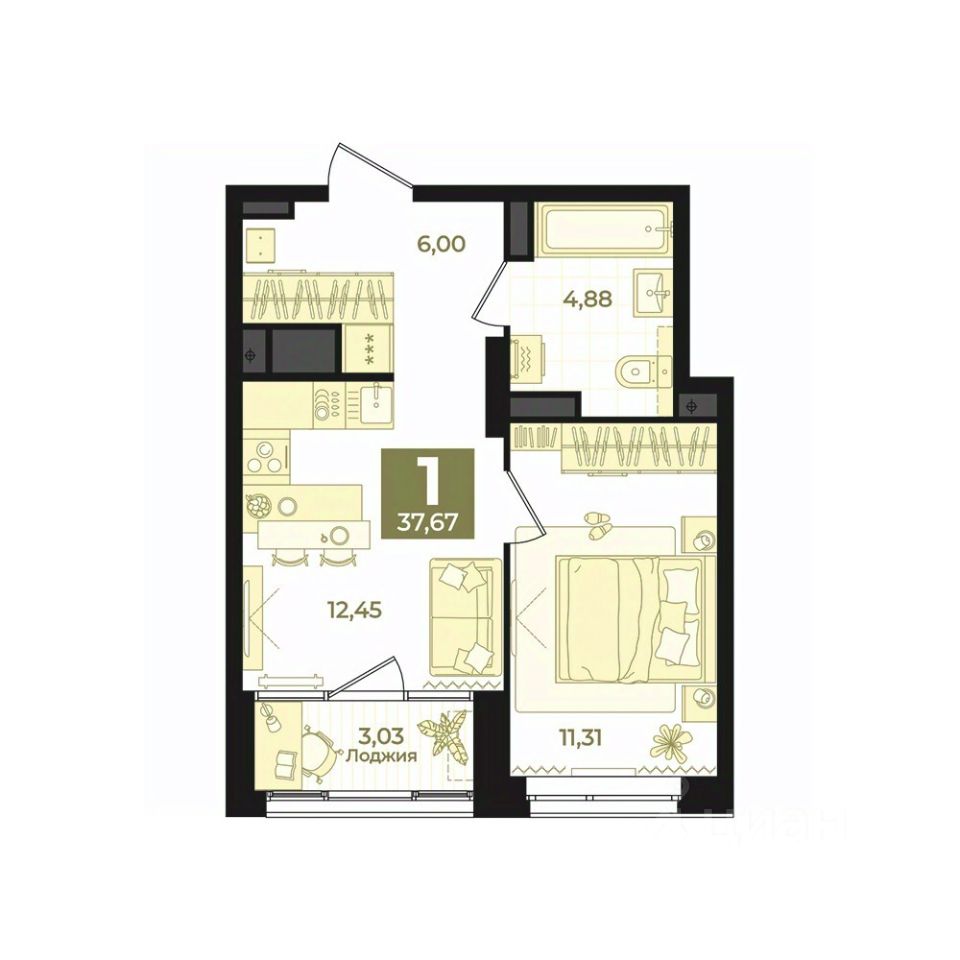 Общая площадь37,67 м2