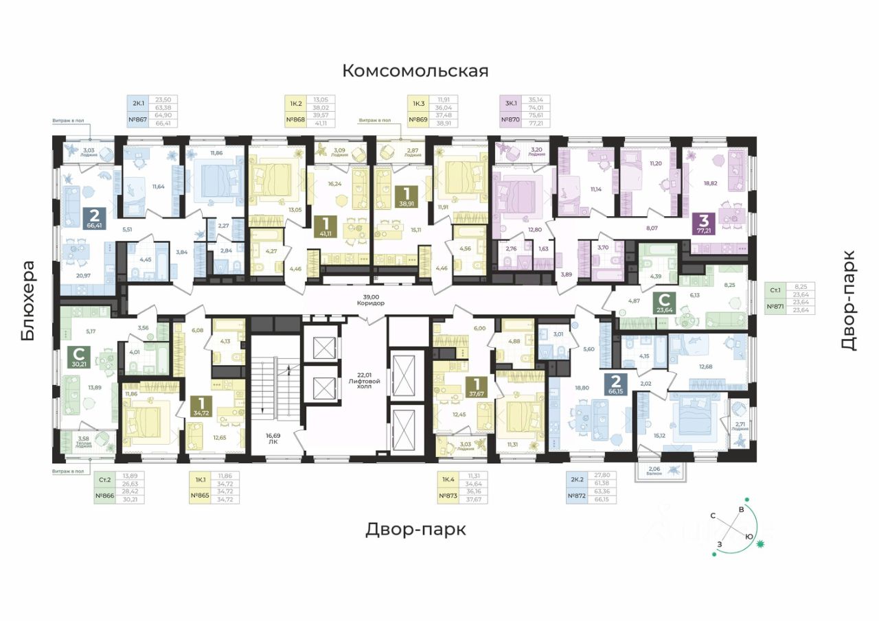 Современная архитектура. Долговечные фасады из навесных панелей и штукатурки, увеличенные окна и французские балконы формируют уникальный узнаваемый образ. Ночная подсветка выделяет дом среди застройки района и подчеркивает выразительность его силуэта. Двор без машин. Игровые площадки для детей разных возрастов, места отдыха и занятий спортом для взрослых не соседствуют с парковкой. Динопарк. Игровые зоны созданы в стиле таинственного мира динозавров. Парк во дворе. Многоуровневое озеленение c прогулочными дорожками, беседками и качелями. 3 уровня безопасности. Контроль доступа по карте жителя, эффективная система видеонаблюдения, консьерж-сервис. Дизайнерские холлы. Парадный холл с остеклением в пол, зонами ожидания, гостевым санузлом и санузлом для мытья лап животным, а также колес велосипедов и колясок. Сервисная компания от застройщика. Обслуживанием дома будет заниматься профессиональная команда. Строительные и технические преимущества.