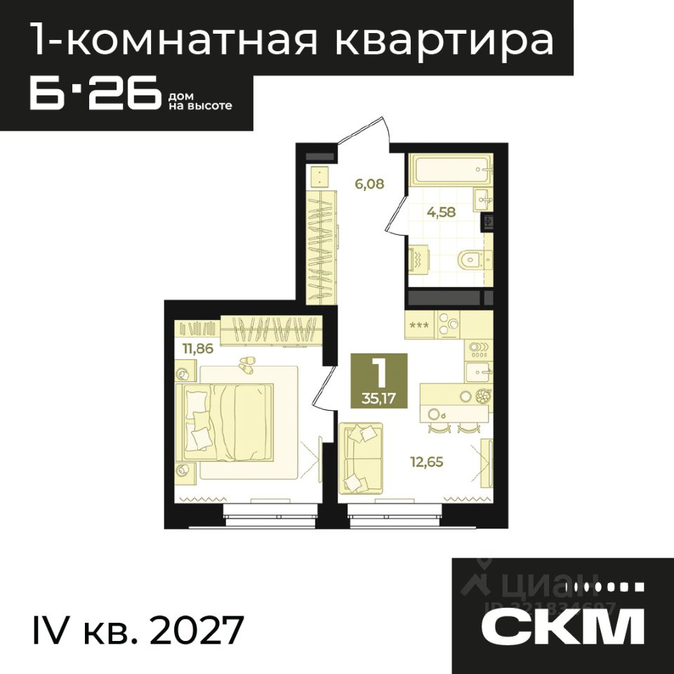 Общая площадь35,17 м2