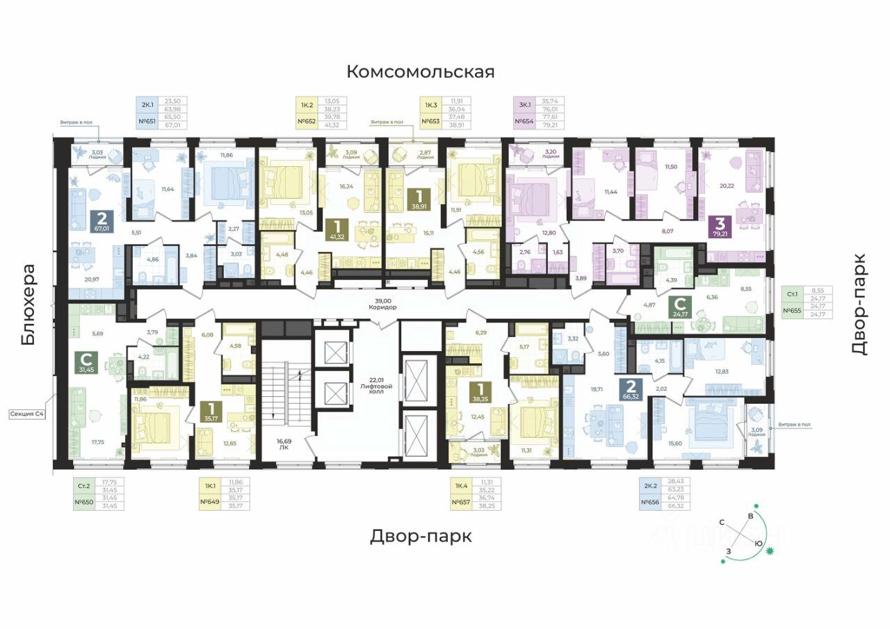 продам 1-к, Блюхера, 265 880 000 ₽
