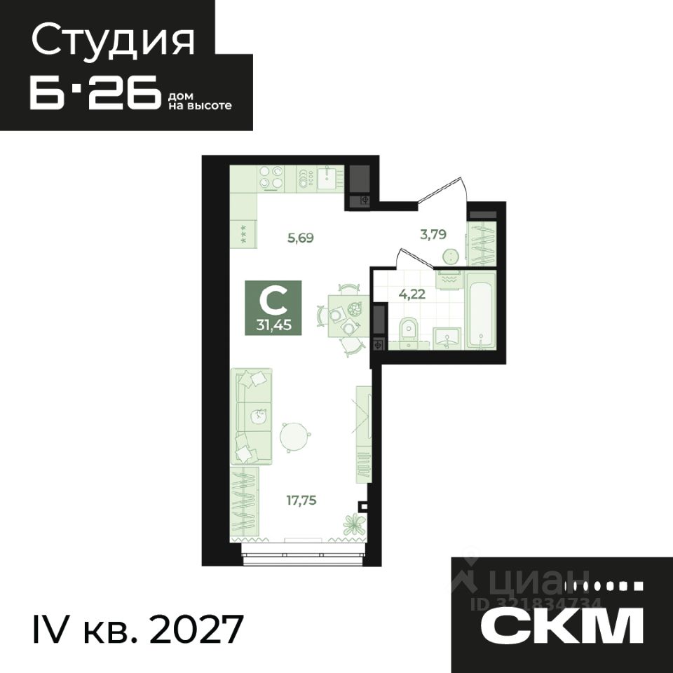 Общая площадь31,45 м2