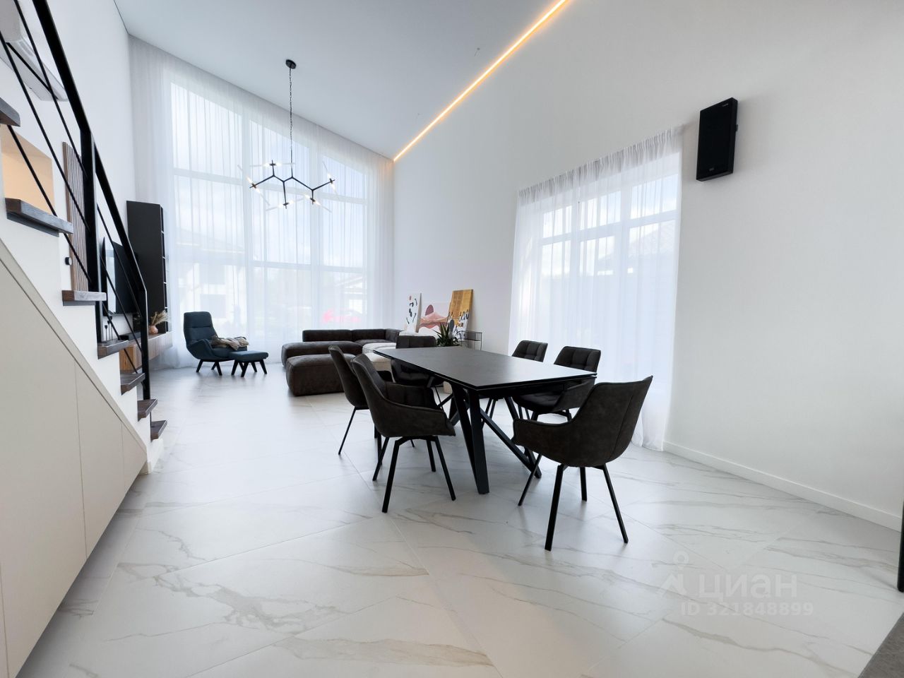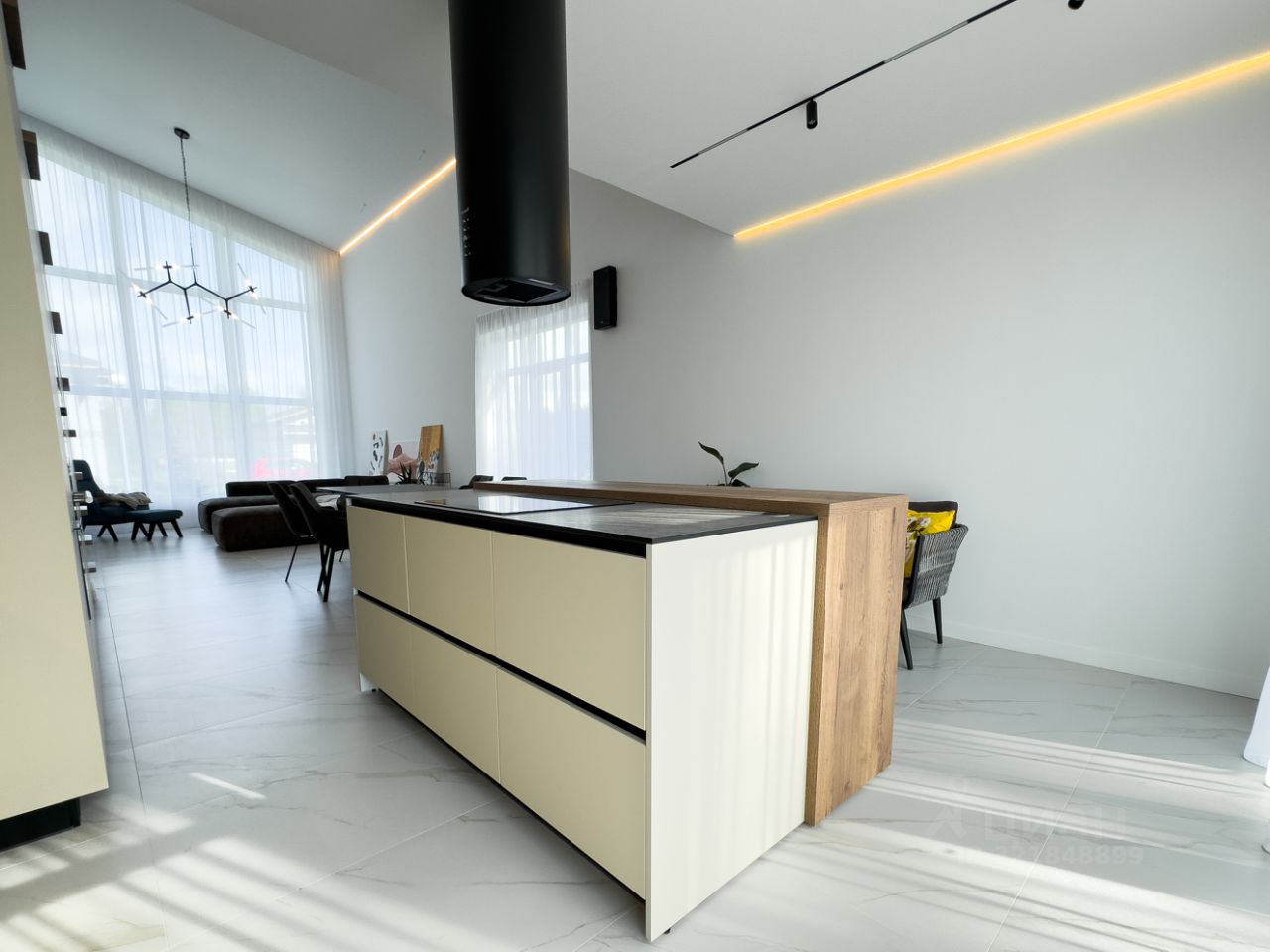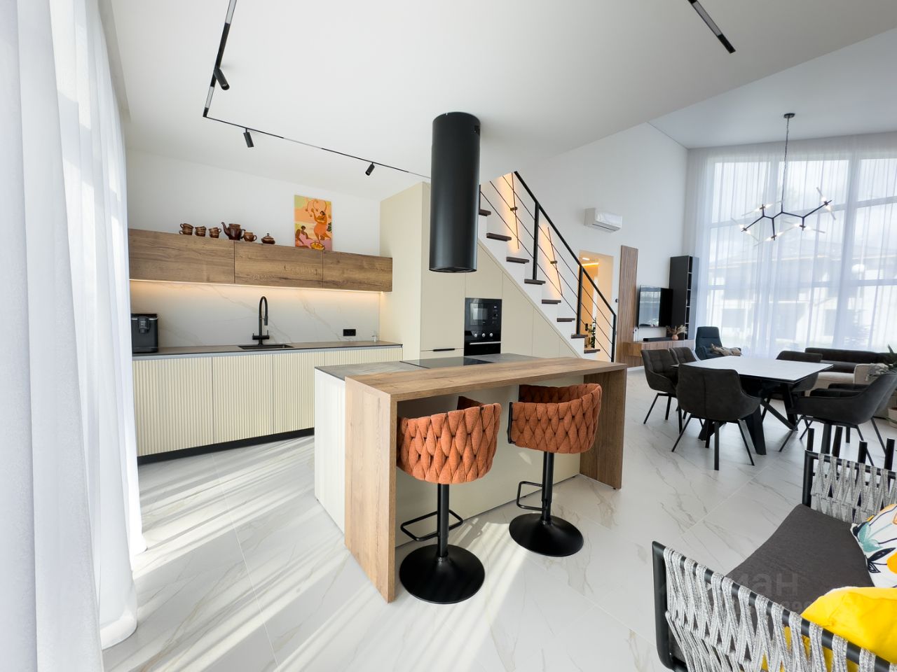 Дом состоит из 3 спален, двух санузлов, просторной гостиной с панорамным окном, который наполняет пространство солнечным светом, и кухней, оснащенной всем необходимым для приготовления любимых блюд, а так же рабочей зоной на втором этаже.