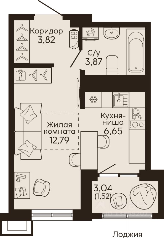 Общая площадь28,65 м2