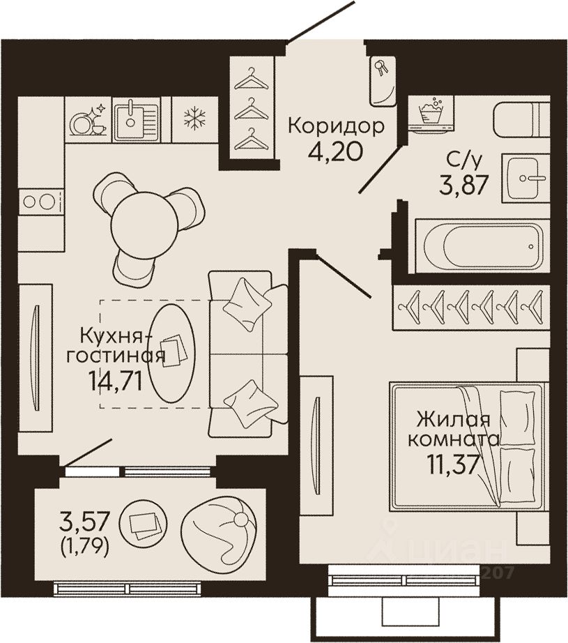 Жилая площадь11,4 м2
