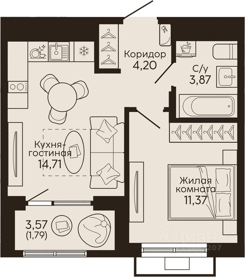 продам 1-к, Челюскинцев, 13а/2 стр.10 188 000 ₽