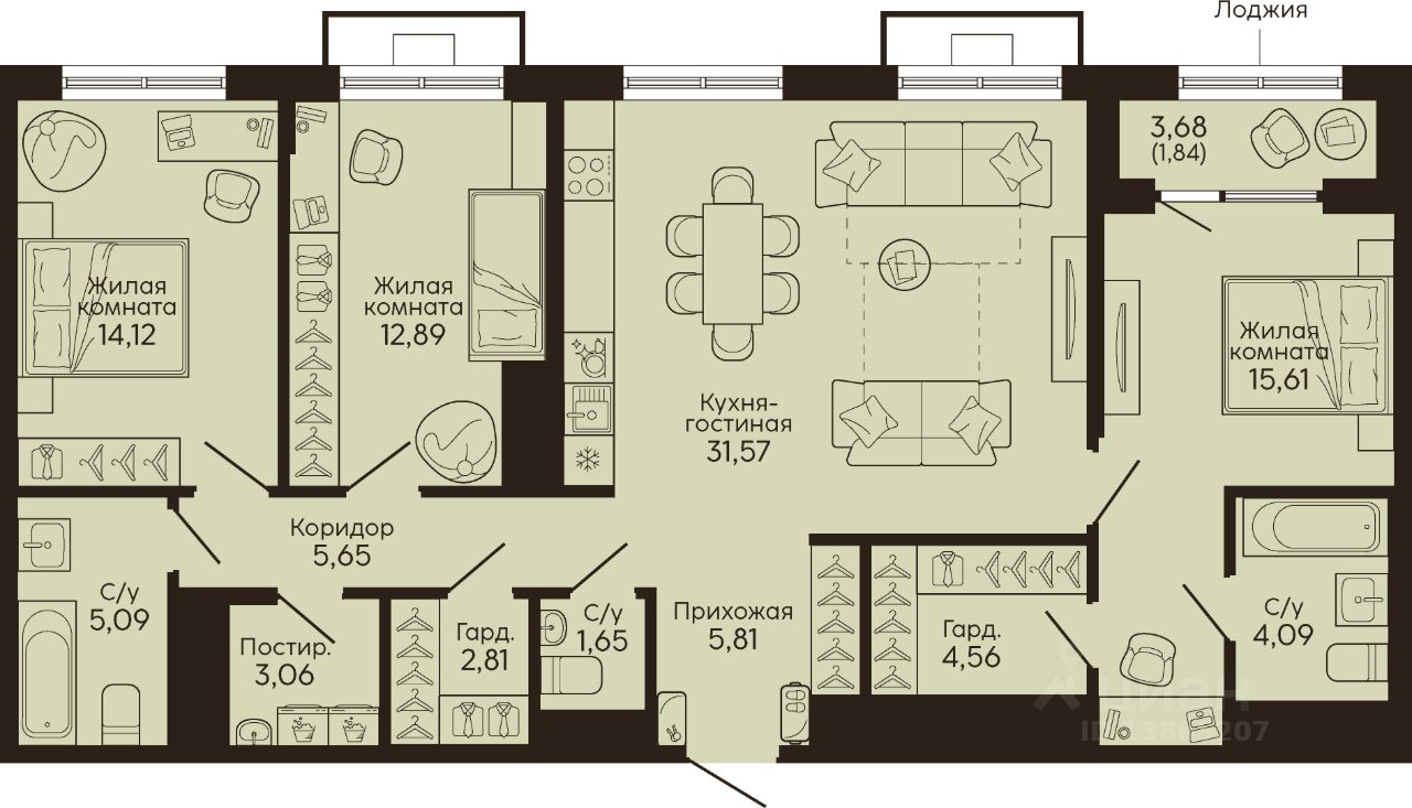 Общая площадь108,75 м2