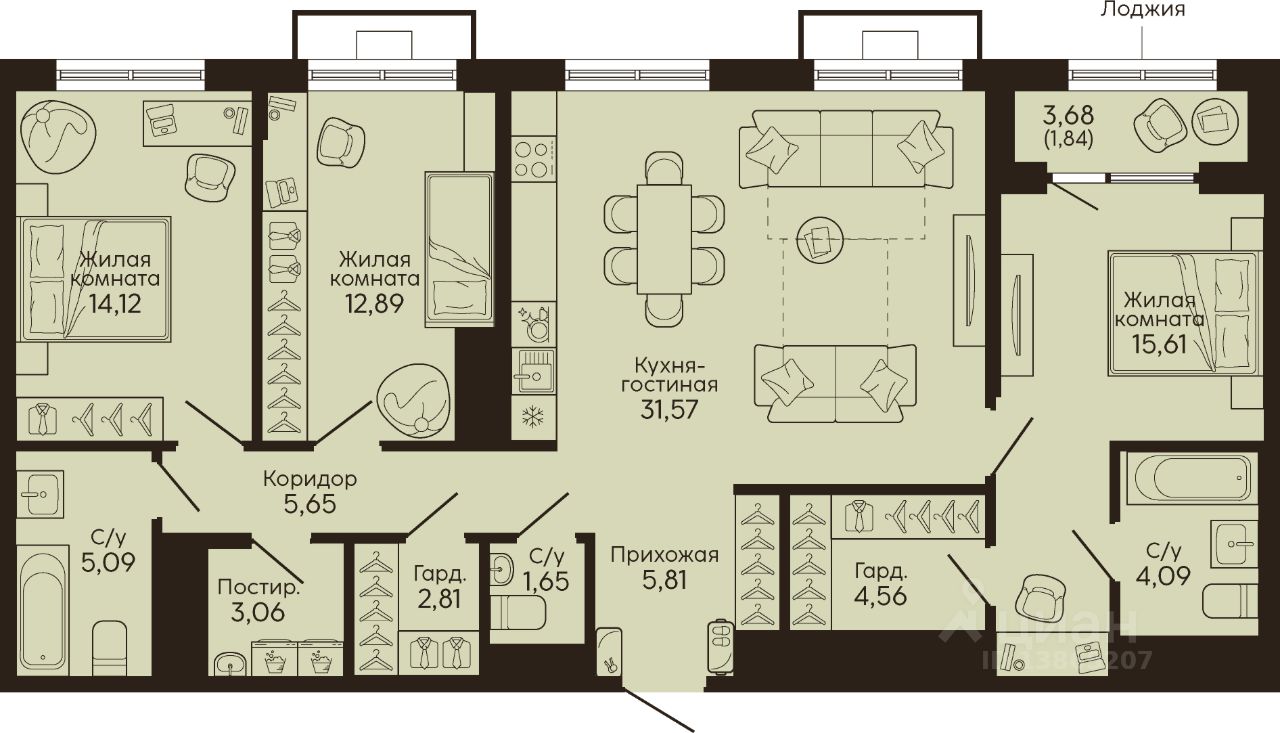 продам 3-к, Челюскинцев, 13а/2 стр.23 076 000 ₽