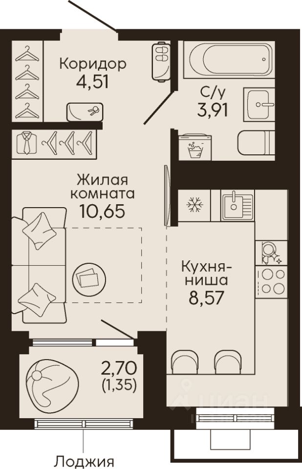 Жилая площадь10,7 м2