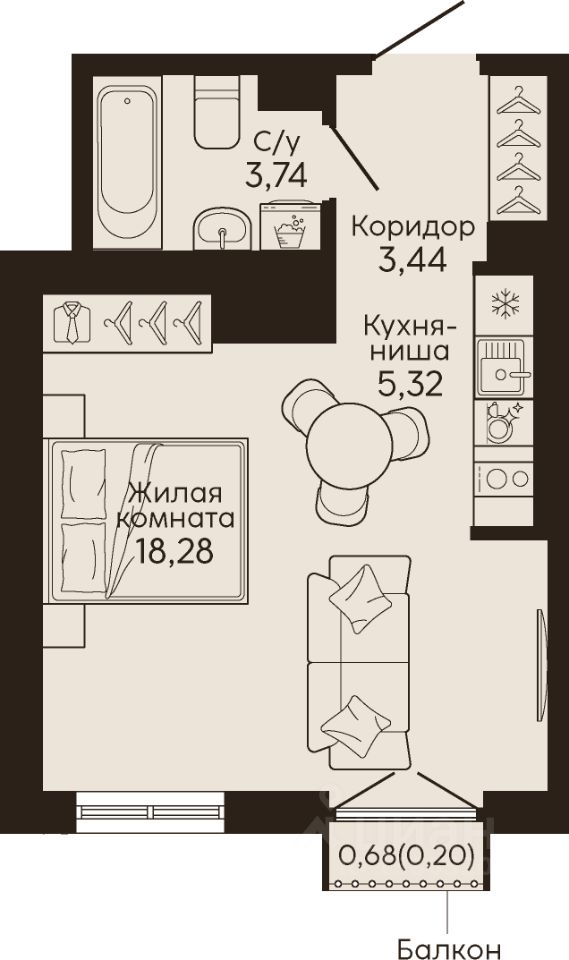 Жилая площадь18,3 м2