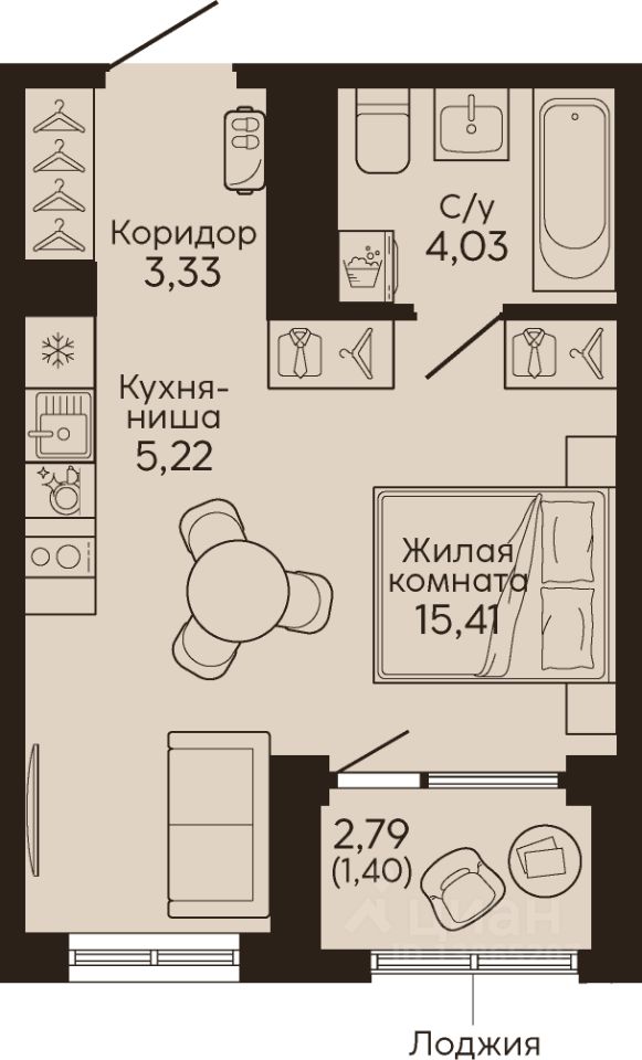 Общая площадь29,39 м2