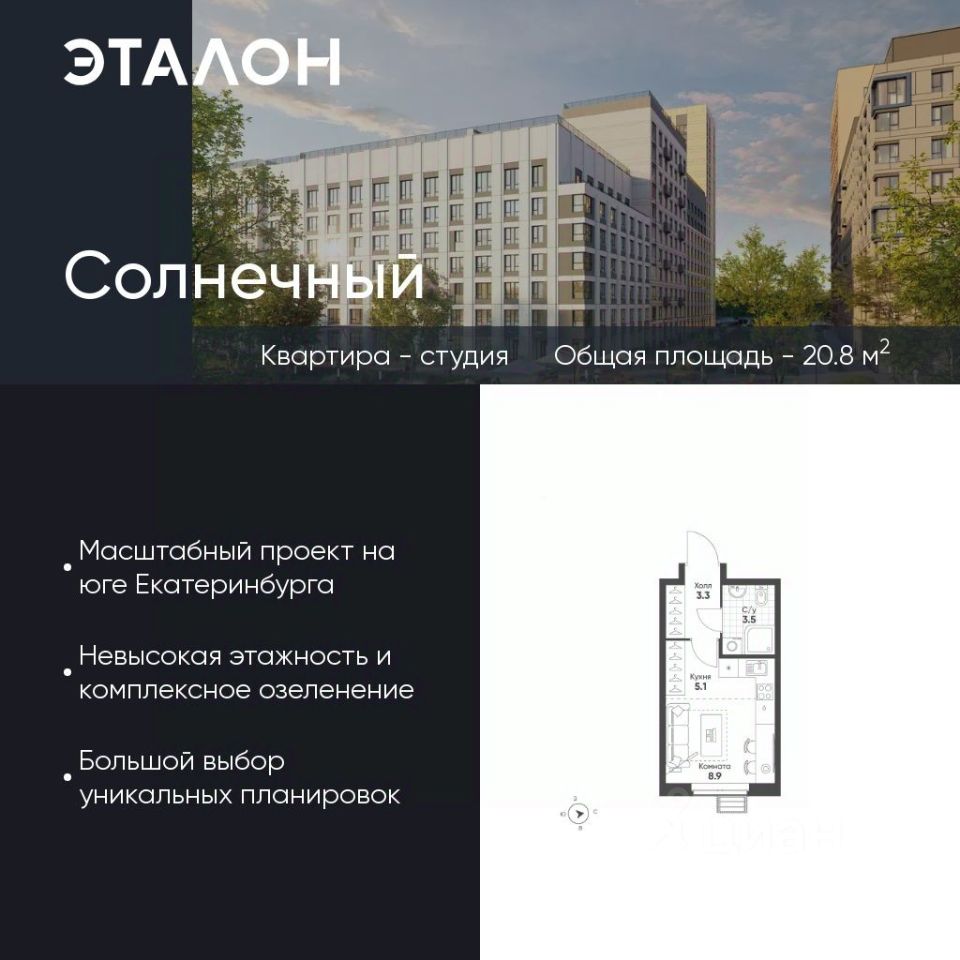 Продается квартира 281, по адресу Свердловская область, г. Екатеринбург, ул. Чемпионов, корпус Солнечный, блок 11.1 в Солнечный на 8 этаже, с площадью 20.8 м2.
