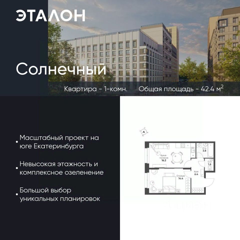 Продается квартира 598, по адресу ЖК ''Солнечный'', корпус Солнечный, блок 7.3-7.4, корпус 1 в Солнечный на 7 этаже, с площадью 42.4 м2.