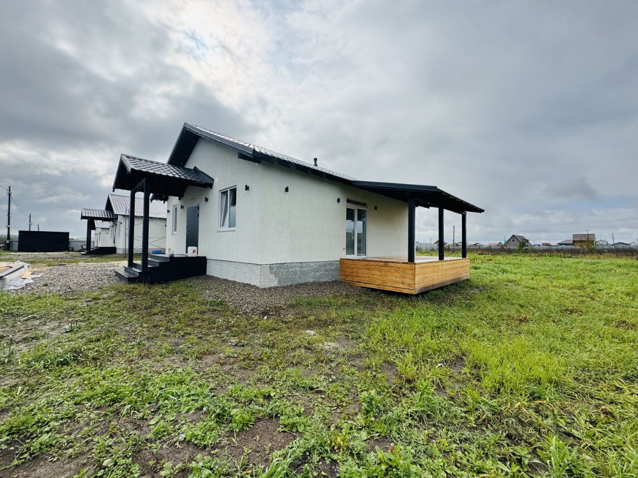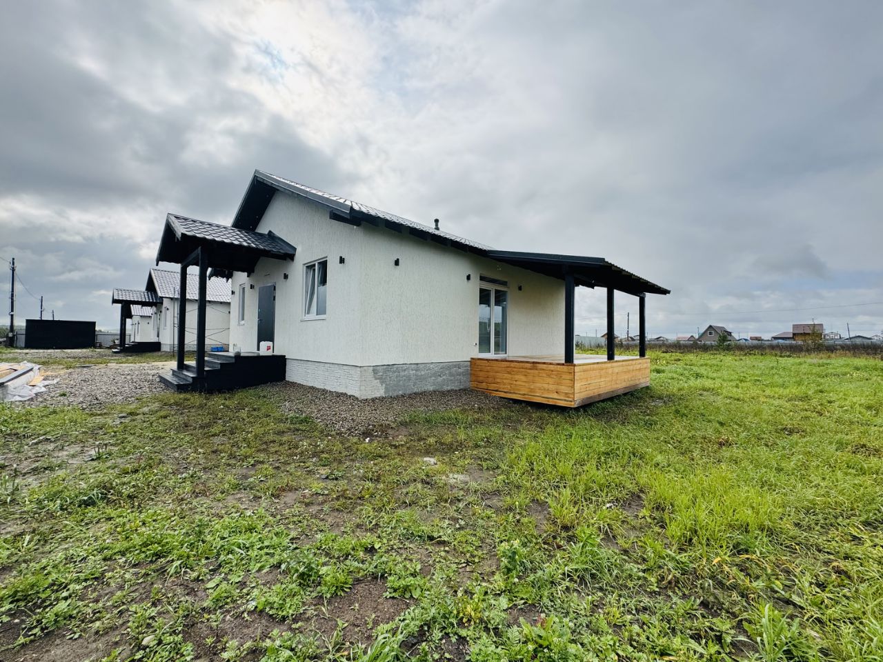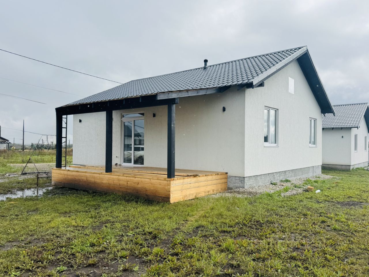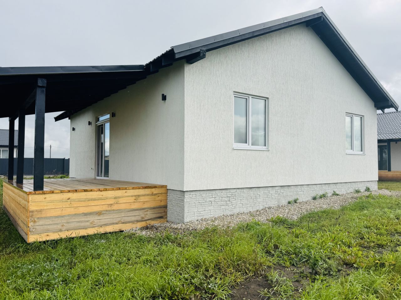 Планировка дома продумана: - 3 жилые комнаты, - просторная кухня-гостиная с панорамными окнами, - санузел, - котельная, - прихожая Конструктив дома: Фундамент свайно- ленточный, с монолитной плитой, Стены из газоблока, с утеплением, Кровля - металлочерепица, утепление крыши 200 мм, Собственная скважина, канализация - выгребная яма. Отопление теплые полы водяные. За счёт электрокотла. Отделка Под Ключ: на полу - керамогранит и ламинат, на стенах обои, межкомнатные двери, натяжные потолки с точечными светильниками, в санузле кафель. Оборудование электрокотел, водонагреватель. Способы покупки: - Наличные - Ипотека с господдержкой (от 6%) - Возможно материнский капитал в первоначальный взнос - Возможна ипотека на строительство с господдержкой - Возможна продажа Вашей недвижимости с одновременной покупкой дома Наши дома подойдут Вам, если Вы хотите: купить большой дом с участком по цене квартиры жить в современном формате загородной жизни бывать больше на природе иметь свой двор, в котором играют дети или Ваши домашние животные сменить обстановку, отдохнуть от городской суеты купить дом в ипотеку с господдержкой Главное Ваше решение купить дом. А как его купить мы найдем вариант. Уже более 100 семей живут в домах, купленных с нами.
