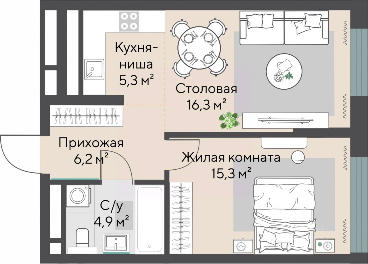 Продаётся 1-комнатная квартира в строящемся доме (Секции 2.3-2.4), срок сдачи: I-кв. 2028, общей площадью 48 кв.м., на 8 этаже.