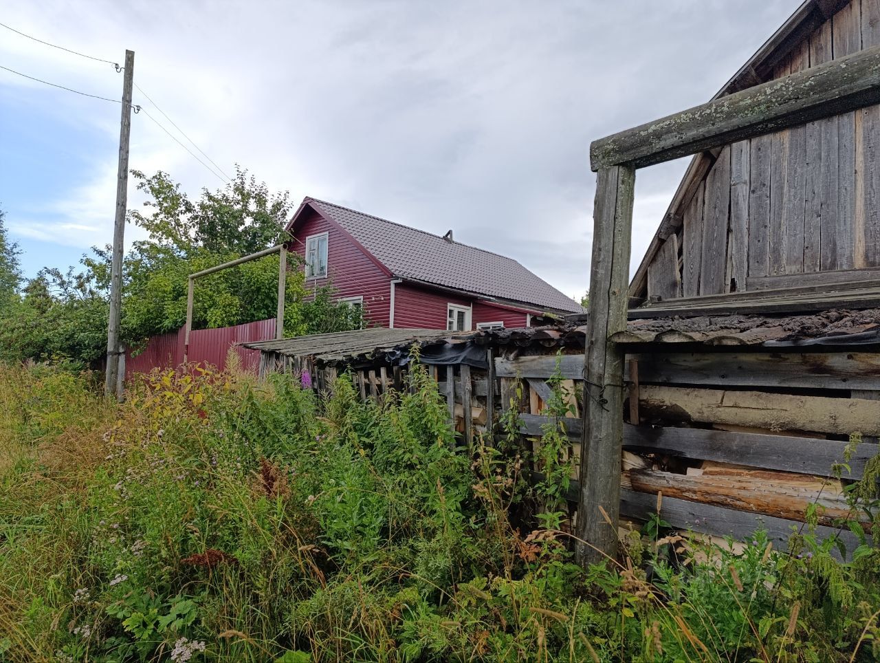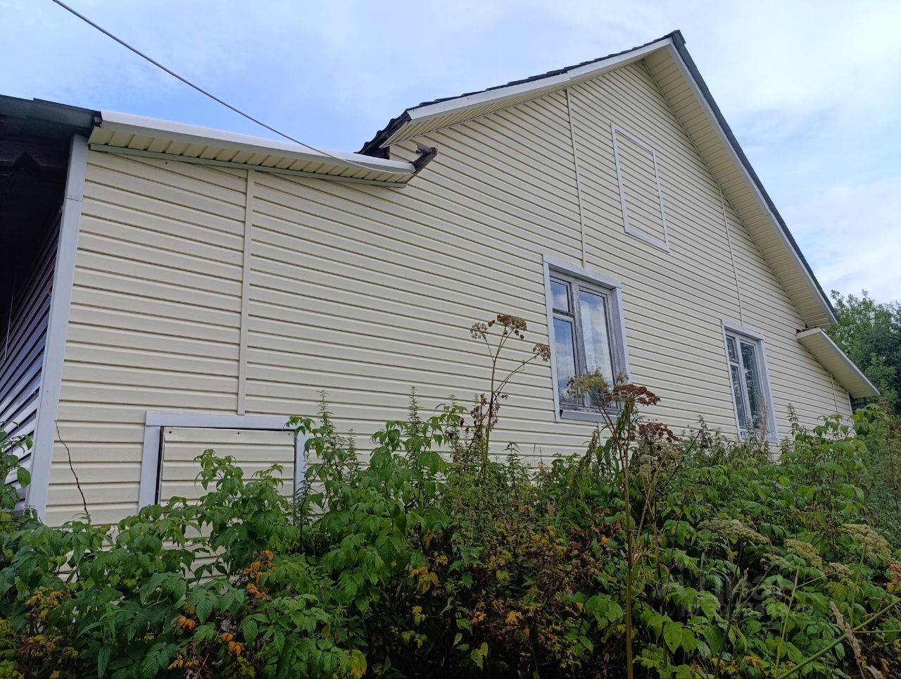 Дом построен в 1993 году. Большой каменный подвал подо всем домом, в полный рост. Мансарда. Отопление печное и электрическое, разводка по дому сделана. Вода из скважины. Надворные постройки: баня, большая стайка (сарай), гараж и дровенник. Туалет уличный. Баня требует ремонта, дом готов к проживанию. Дом находится у леса, грибы растут прямо за забором. Соседей сбоку и перед участком нет, за участком лес. По диагонали соседи дачники.
