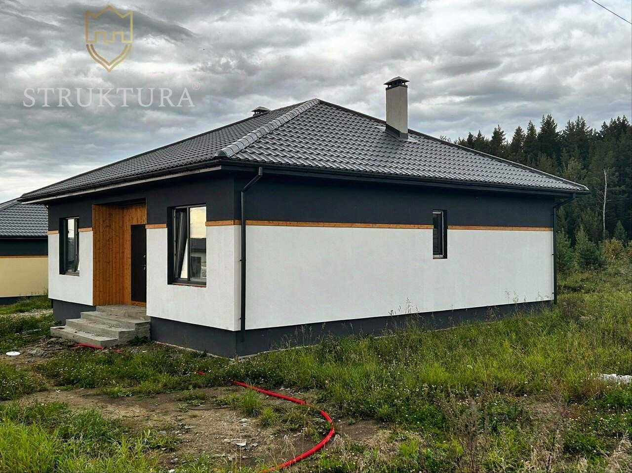 Качественный дом с панорамным видом на лес: идеальное решение для семьи с детьми. Участок правильной формы, солнечный, без перепадов позволит бюджетно организовать ландшафтный дизайн. Здесь хватит места для парковки автомобиля, навеса или гаража и даже для строительства бани или зоны отдыха с купелью на дровах. Участок украшен молодыми соснами, которые с каждым годом будут становиться всё красивее и выше. Фасад дома оформлен в элегантной чёрно-белой гамме с использованием декоративной штукатурки. Контрастное сочетание чёрного и белого цветов изящно гармонирует с элегантными деревянными элементами, которые украшают весь периметр здания. Надёжная металлочерепица обеспечивает защиту от любых погодных условий.