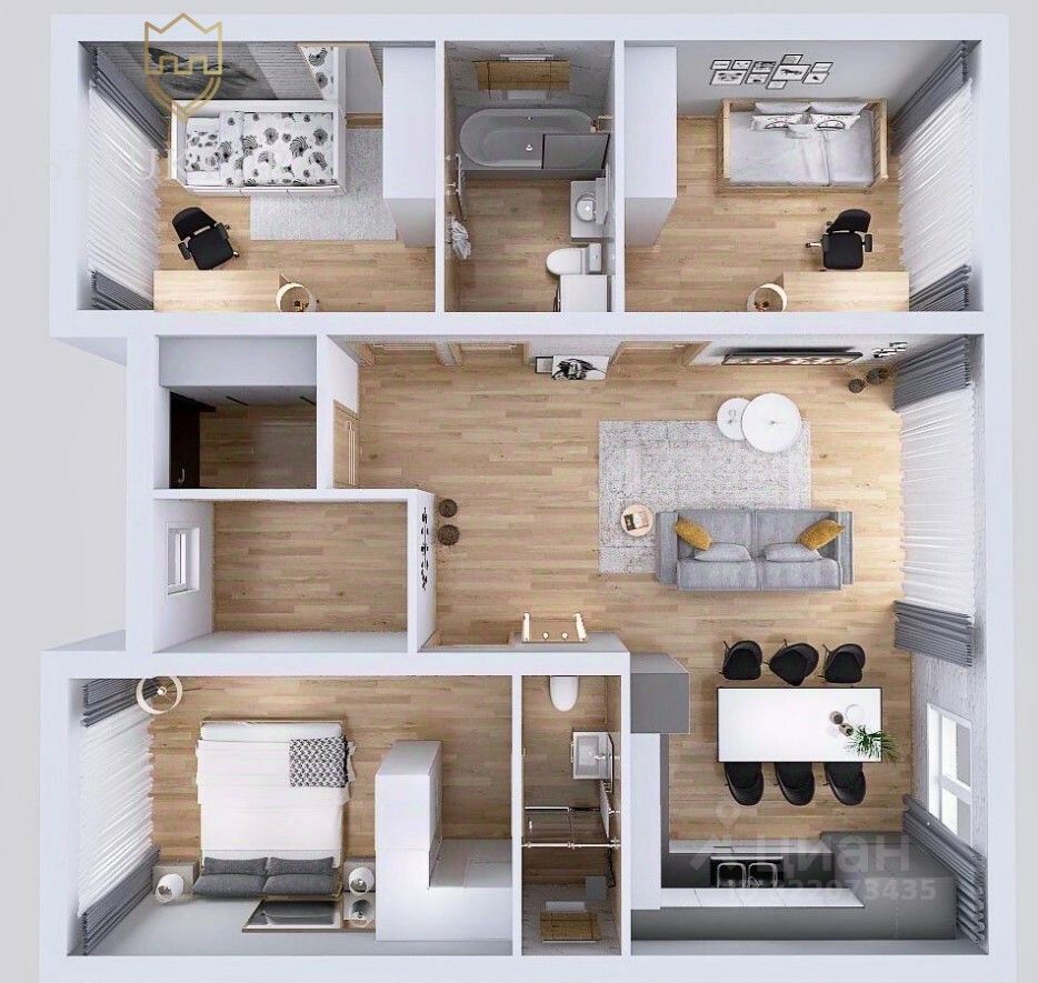 Качественный дом с панорамным видом на лес: идеальное решение для семьи с детьми. Участок правильной формы, солнечный, без перепадов позволит бюджетно организовать ландшафтный дизайн. Здесь хватит места для парковки автомобиля, навеса или гаража и даже для строительства бани или зоны отдыха с купелью на дровах. Участок украшен молодыми соснами, которые с каждым годом будут становиться всё красивее и выше. Фасад дома оформлен в элегантной чёрно-белой гамме с использованием декоративной штукатурки. Контрастное сочетание чёрного и белого цветов изящно гармонирует с элегантными деревянными элементами, которые украшают весь периметр здания. Надёжная металлочерепица обеспечивает защиту от любых погодных условий. Особую выразительность облику дома придают стильные чёрные окна, а практичную функциональность дополняет просторная бетонная терраса под отдельной крышей. Продуманная планировка включает просторный холл, три изолированные спальни, одна из них мастер-спальня, где каждый член семьи найдёт свой уютный уголок для отдыха. Центральное место в доме занимает просторная кухня-гостиная, объединённая с террасой. Три санузла, один из которых совмещён с котельной, обеспечивают максимальный комфорт для всей семьи. Каждая деталь интерьера продумана до мелочей: от эргономичного расположения комнат до удобных систем хранения. Особого внимания заслуживает терраса с потрясающим видом на окружающий пейзаж. Здесь вы сможете наслаждаться утренними часами под пение птиц и проводить умиротворяющие вечера, любуясь природой. Для вашего удобства предлагаются два варианта: полностью готовый ремонт, позволяющий сразу въехать и начать жить, или white box — идеальная основа для создания собственного уникального интерьера. КП ''Лесные Ключи'' — это настоящий оазис спокойствия, где каждый день наполнен свежестью лесного воздуха и тишиной загородной жизни. Здесь вы сможете по-настоящему отдохнуть от городской суеты и насладиться всеми преимуществами собственного дома. Всего в 100 метрах от дома раскинулся обширный лесной массив, где можно совершать утренние пробежки, собирать грибы и ягоды или просто гулять в тишине.