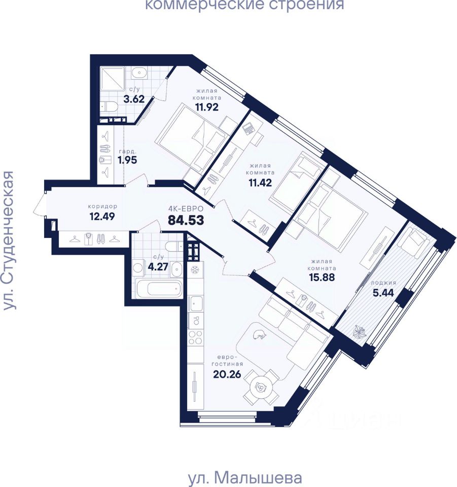 Общая площадь84,53 м2