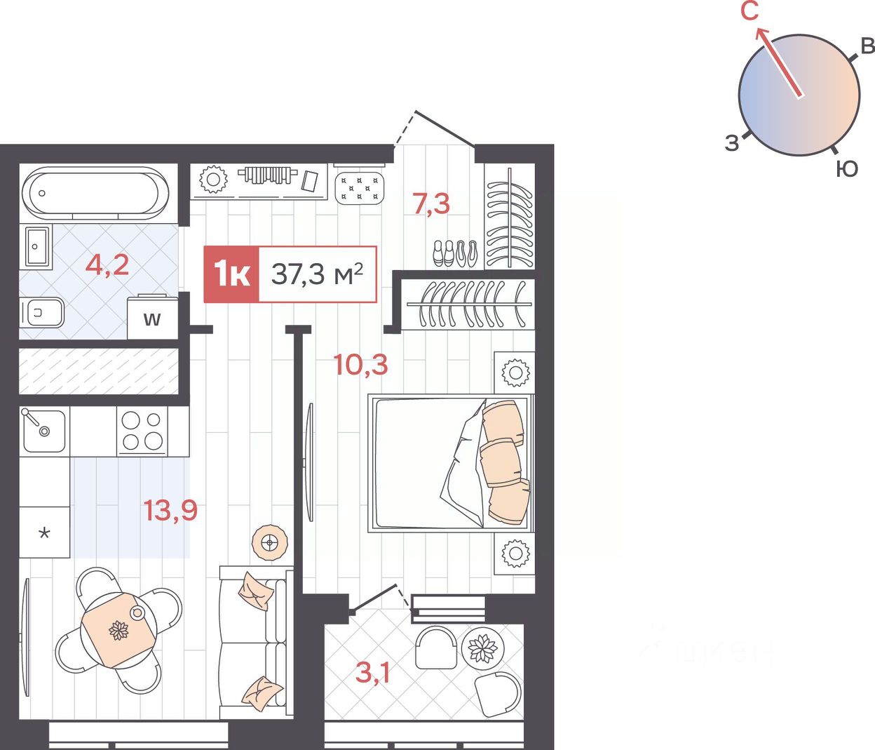 Общая площадь37,3 м2