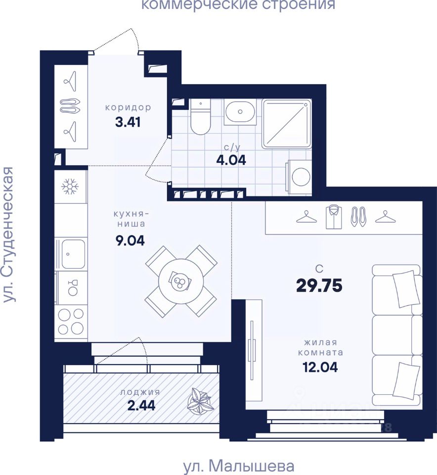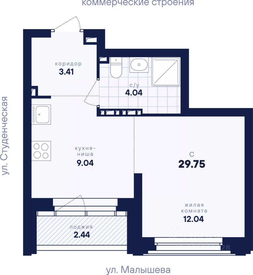 Общая площадь29,75 м2