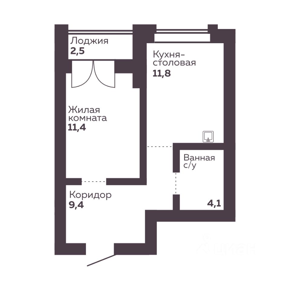 Жилая площадь11,4 м2