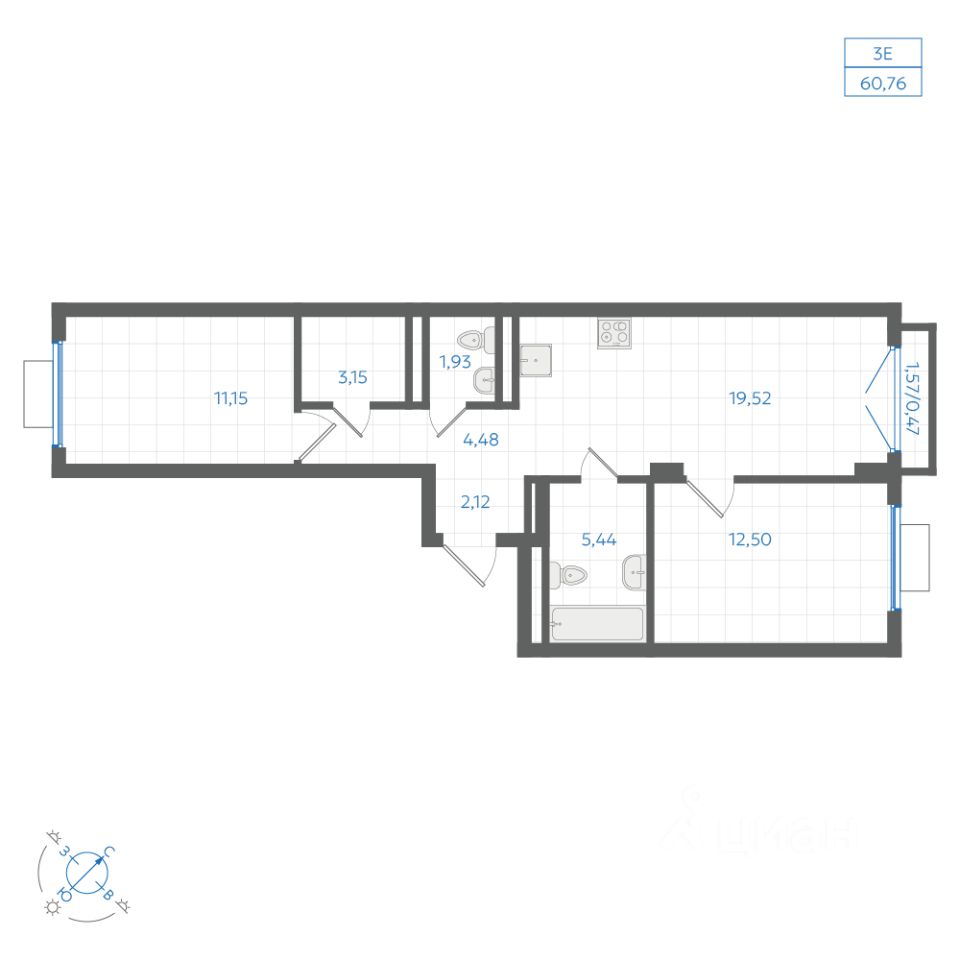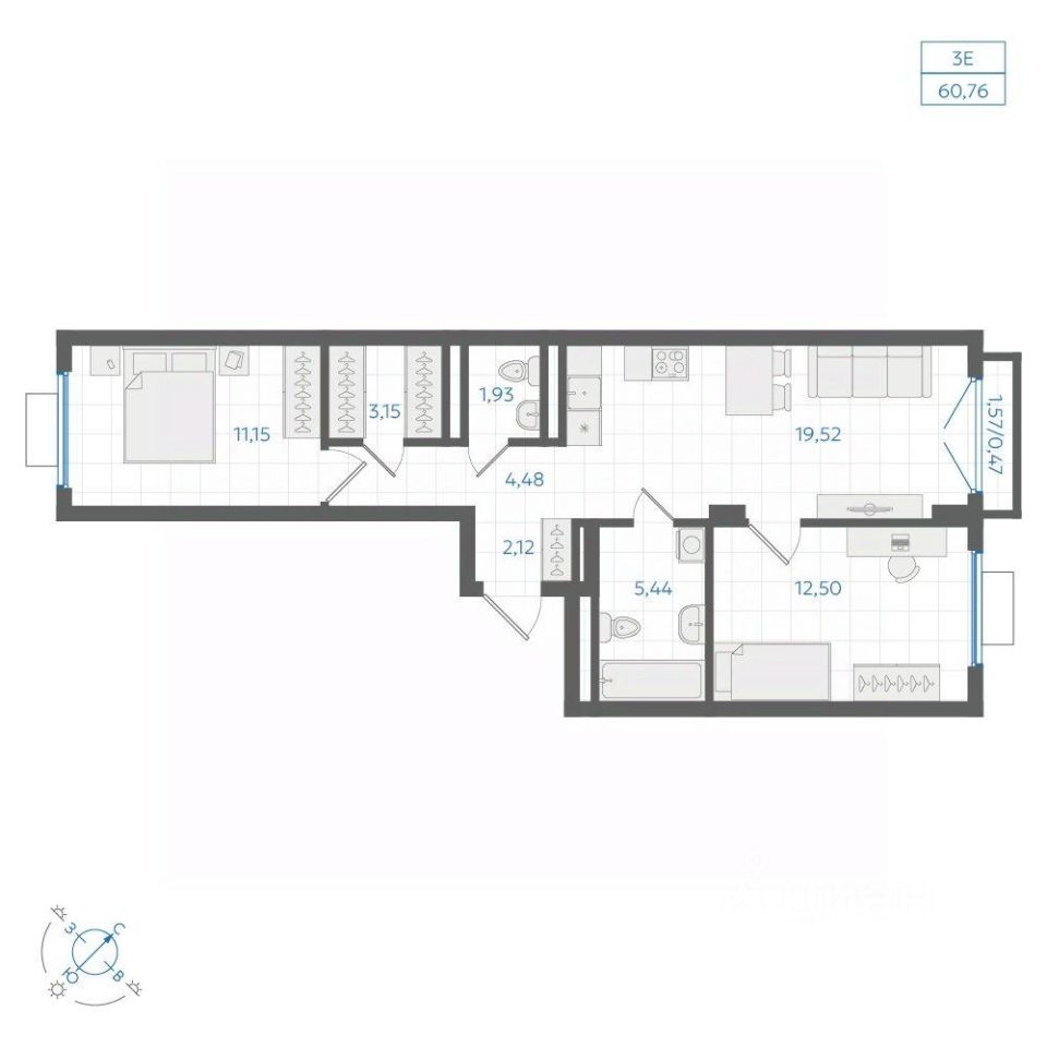 Квартиры комфорт-класса площадью до 77 кв.м с чистовой отделкой.