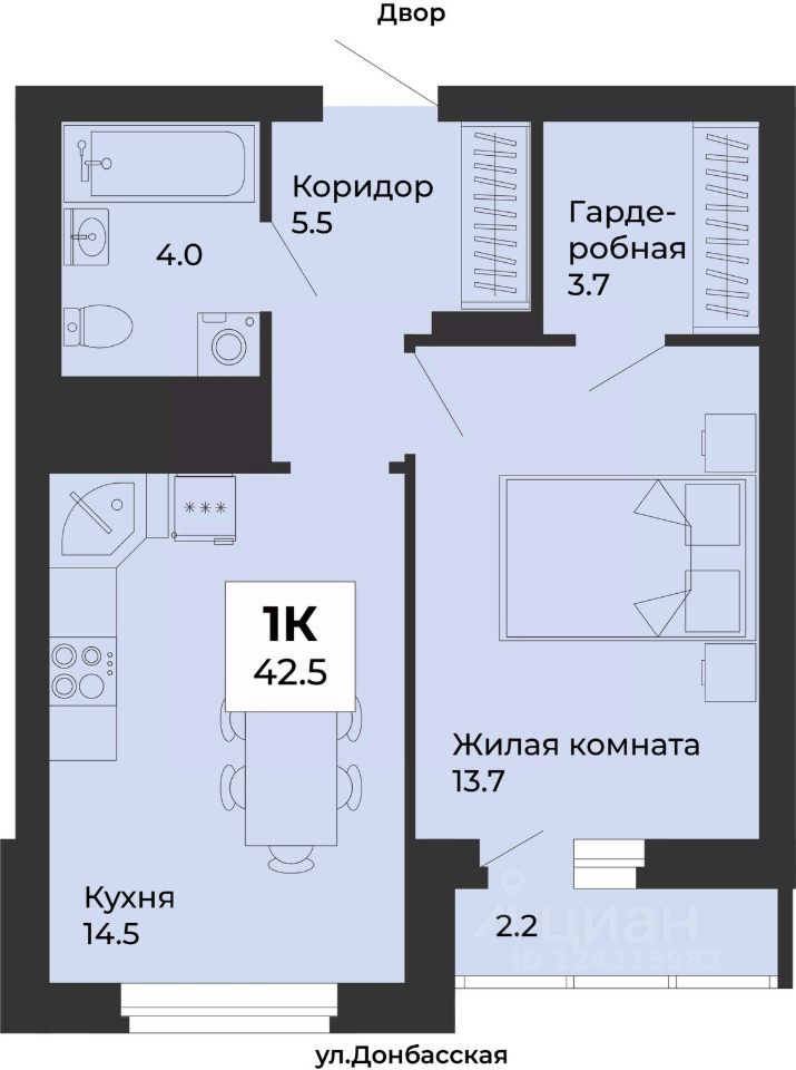 Общая площадь42,5 м2