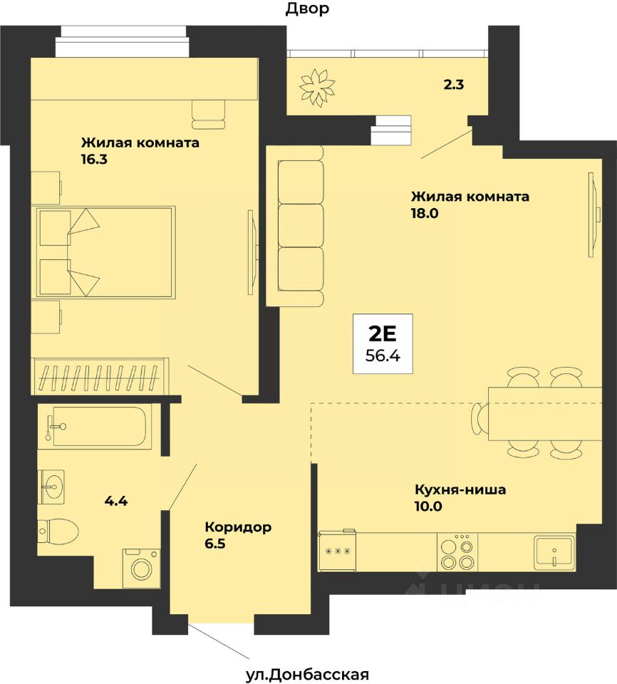 Продаётся 2-комнатная квартира в строящемся доме (Дом 5), срок сдачи: III-кв. 2028, общей площадью 56.4 кв.м., на 2 этаже. ЖК ''Белая башня'' - дома с примечательной архитектурой в сердце района Уралмаш. Комплекс расположен вблизи ведущих транспортных линий: ул. Донбасская и ул. Машиностроителей. ''Белую башню'' отличает развитая инфраструктура в сочетании с природными и историческими богатствами: рядом парк Победы, озеро Шувакиш, водонапорная ''Белая башня''. В пешей доступности несколько школ, детских садов, кафе и магазинов. Есть спортивная школа по дзюдо и самбо, лыжная база, спортивный комплекс ''Олимп'' и домашняя тренировочная арена ФК ''Урал'' - ''СКБ-Банк Арена''. В 5 минутах ходьбы ГКБ 14 и один из лучших диагностических центров области.