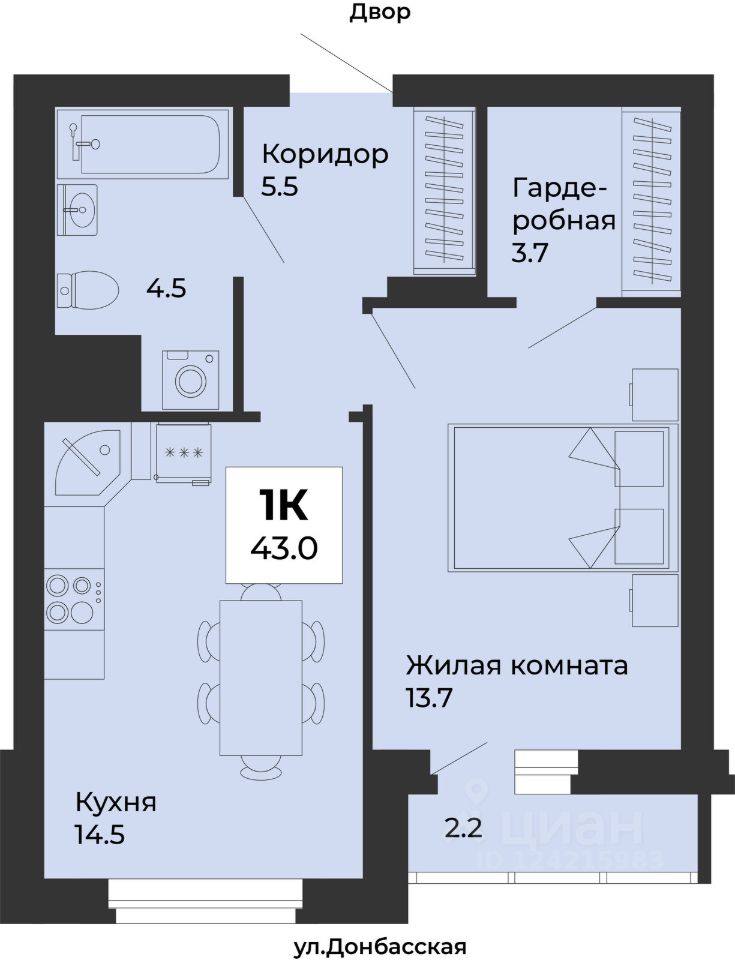 Общая площадь43 м2