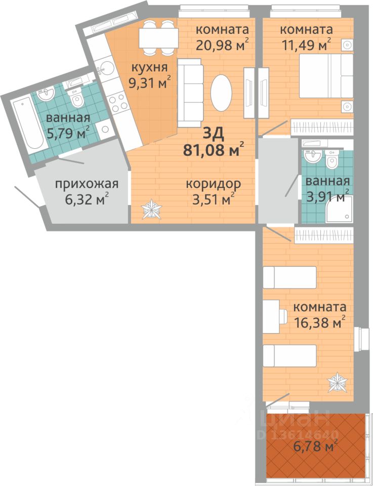 Продаётся 3-комнатная квартира в сданном доме (Коперника, 33), срок сдачи: III-кв. 2025, общей площадью 81.08 кв.м., на 16 этаже. Новый жилой дом от застройщика ''СЗ Дельа-Групп'' расположен по адресу: г. Екатеринбург, улица Викулова (дублёр).