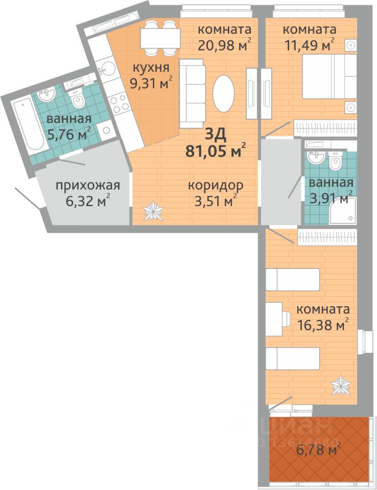 Продаётся 3-комнатная квартира в сданном доме (Коперника, 33), срок сдачи: III-кв. 2025, общей площадью 81.08 кв.м., на 17 этаже. Новый жилой дом от застройщика ''СЗ Дельа-Групп'' расположен по адресу: г. Екатеринбург, улица Викулова (дублёр).