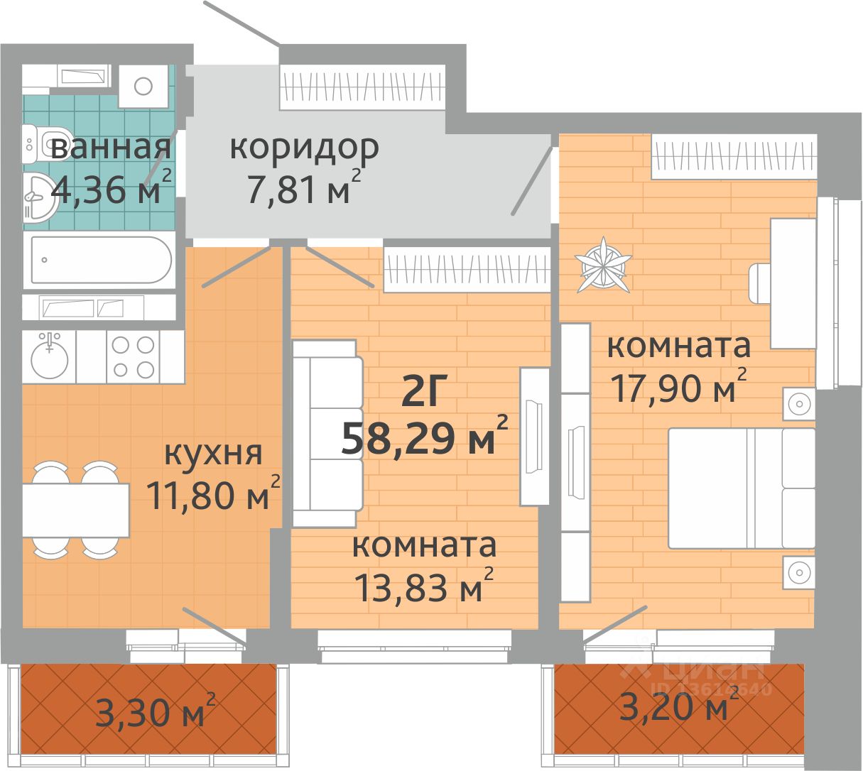 Продаётся 2-комнатная квартира в сданном доме (Коперника, 33), срок сдачи: III-кв. 2025, общей площадью 58.29 кв.м., на 22 этаже. Новый жилой дом от застройщика ''СЗ Дельа-Групп'' расположен по адресу: г. Екатеринбург, улица Викулова (дублёр).