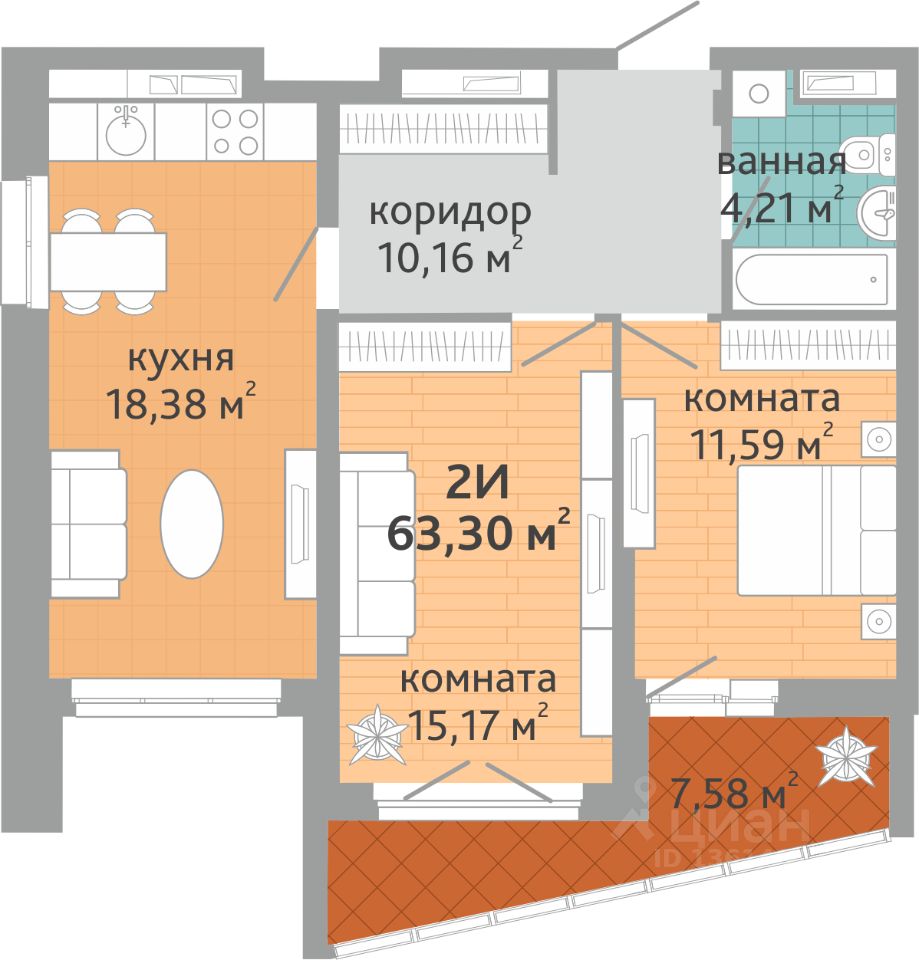Продаётся 2-комнатная квартира в сданном доме (Коперника, 33), срок сдачи: III-кв. 2025, общей площадью 63.3 кв.м., на 21 этаже. Новый жилой дом от застройщика ''СЗ Дельа-Групп'' расположен по адресу: г. Екатеринбург, улица Викулова (дублёр).