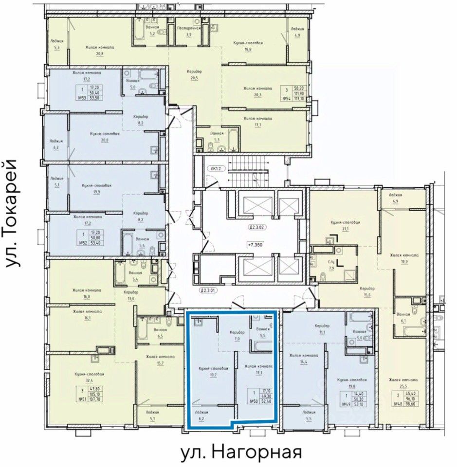 1 ком. квартира 50,7 м2 без учета лоджии в ЖК бизнес класса Нагорный'', по адресу: г. Екатеринбург ул. Нагорная , 16 ЖК Нагорный - это ультрасовременный жилой квартал бизнес - класса расположенный в центре города. Победитель градостроительного конкурса ''ТОП ЖК - 2022'' в номинации ''Лучший жилой комплекс-новостройка РФ'', ''Лучший региональный жилой комплекс бизнес-класса'' по версии престижной федеральной премии Urban Awards 2021. Общая площадь: 52.4 кв.м., на 3 этаже. -Кухня гостиная-20.9м2 -Комната- 17.2 м2 -Прихожая-7 м2 -Сан-узел - 5.6м2 -Теплая лоджия -6.