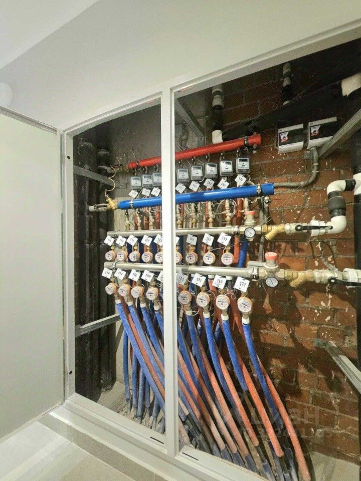 Отделка под чистовую, установлена сантехника, приборы учета, выполнена разводка систем коммуникаций, стены оштукатурены, выровнены, в ванной сделана гидроизоляция, стяжка на полу.