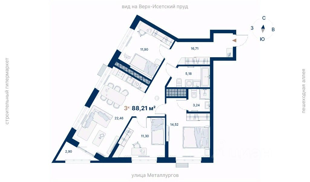 Комплекс Комфорт+ класса: пешеходная аллея, сервисы внутри комплекса, парковка, инфраструктура под рукой.