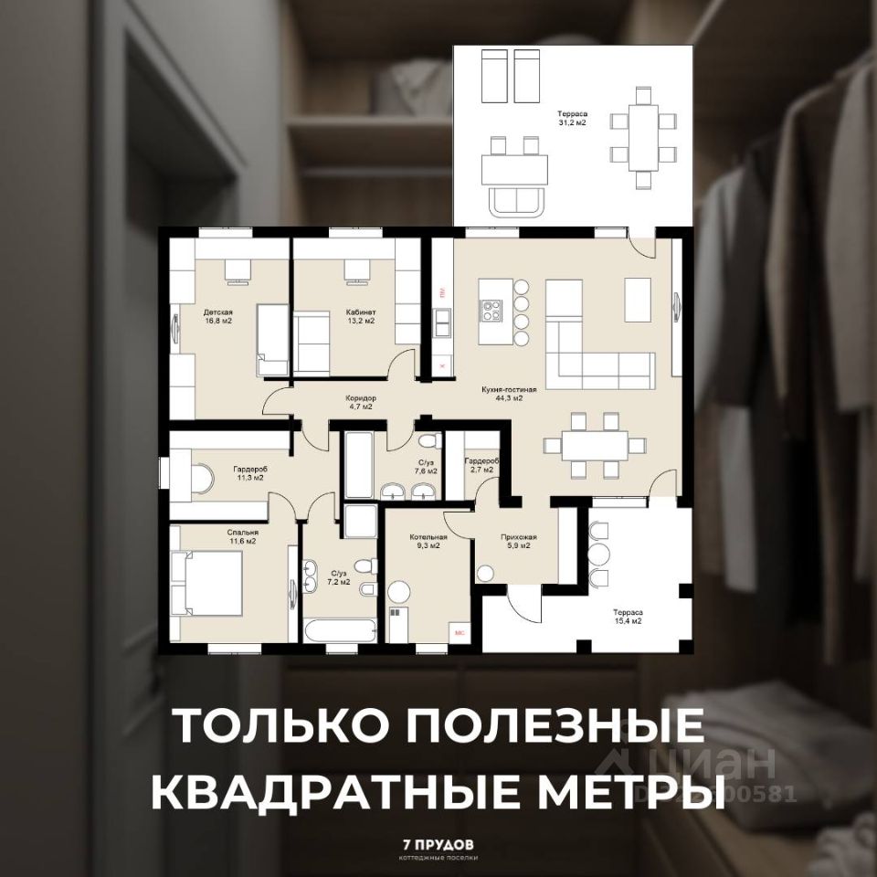 — Просторная прихожая с гардеробной почти 9 кв. м для вашего удобства. — Котельная 8.7 кв. м, оснащенная по последним стандартам. — Две просторные спальни — Мастер-спальня с собственной ванной комнатой и гардеробной. — Кухня-гостиная 45 кв. м, идеальное место для семейных ужинов и приема гостей. — Две большие террасы для отдыха на свежем воздухе.