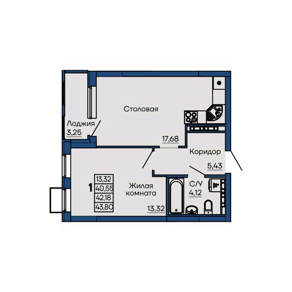 Однокомнатная квартира с лоджией на 8 этаже, большая кухня-гостиная. Окна выходят на ул. Гагарина. Чистовая отделка под ключ. Дом в 15 минутах от центра города. Рядом остановки общественного транспорта, школы и детские сады.
